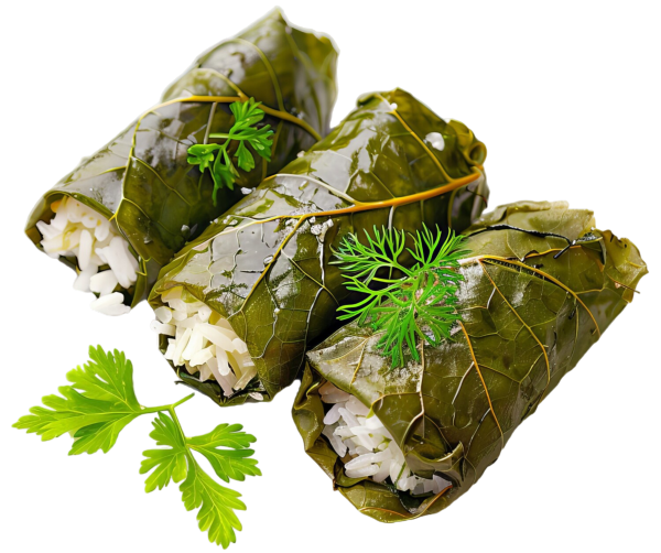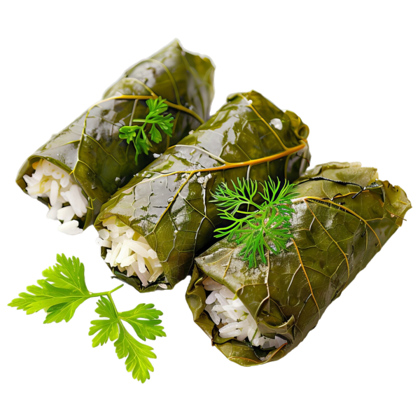 Viininlehtikääryleitä täytteenä riisiä, sipulia ja yrttejä tuore leipää (3 kpl).